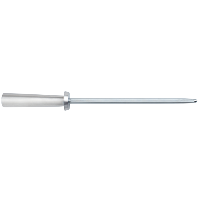 As you use your knife, the razor-sharp edge naturally bends over just a tiny bit as the edge contacts the cutting board. Eventually, this means the sharp edge is no longer making direct contact with the food. The knife feels dull. The Shun Combination Honing Steel is the solution. It gently realigns the edge of your blade, bringing the “sharp” back. It offers two honing surfaces: a smooth one for weekly honing and a micro-ribbed one for monthly honing—depending on your usage, of course. A built-in angle guide makes it easy to hone your Shuns with ease and precision. The steel-grey handle looks beautiful with the rest of your knives.